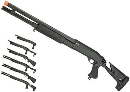 The shotgun shell magazine holds up to 30 rounds, giving you plenty of shots before needing to reload, which is great for longer skirmishes. Built with metal for both the frame and barrel, it feels sturdy and durable, able to handle rough play. The fixed hop-up system helps improve shot accuracy, though it doesn’t allow for adjustment, which may limit fine-tuning for different BB weights or distances. Weighing around 6.65 pounds, it strikes a reasonable balance—it's not too heavy but may feel a bit bulky for some users looking for lighter gear. The full rear-stock design adds stability for better aiming. However, it comes without a warranty, so any issues after purchase might need to be handled out of pocket.