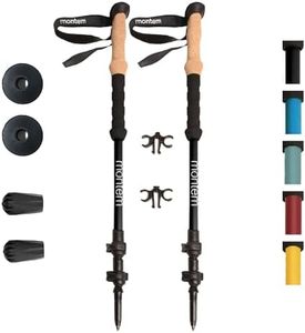 Their standout feature is the built-in internal spring that absorbs shock, reducing stress on your joints—a big plus if you plan to hike long distances or on uneven ground. The grips are made from EVA foam, which is soft and provides a good grip even when your hands get sweaty, plus the rubber tops add extra comfort. The poles come with durable tungsten carbide tips and useful accessories like snow and mud baskets, making them versatile in different weather conditions and terrains.