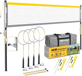 The ENOVI EasyGo Badminton Set is a solid choice if you're looking for a convenient and portable setup for casual badminton play in backyards or outdoor spaces. It includes everything you need: a net, two sturdy steel poles with an upgraded hidden lock for quick, tool-free assembly, four rackets, and birdies, all packed neatly into a storage box that also serves as the net's base. This design makes it easy to carry and store, weighing less than 5 pounds, which is great if you want to take it to parks or on trips.
