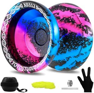 Made from aluminum alloy 6061 with a sandblasting finish, this yoyo is both durable and attractive with a sleek design in black, blue, and purple colors. The weight of 2.29 ounces is suitable for kids, providing enough heft for stability and control without being too heavy. It comes with 12 yoyo strings, a carrying bag, a bearing removal tool, an extra axle, and a mini Allen key, making it a comprehensive package for new yoyo enthusiasts.
