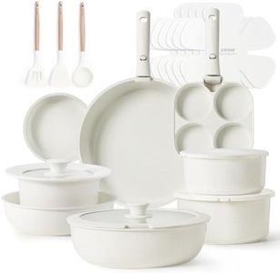 The CAROTE 22-piece cookware set offers a wide range of pots, pans, and useful utensils, making it a solid choice if you want a complete set without spending a lot. The cookware is made from reinforced aluminum, which keeps it lightweight but still durable for everyday use. Its granite nonstick coating is designed to be tough and prevents food from sticking, making cooking and cleaning easier.