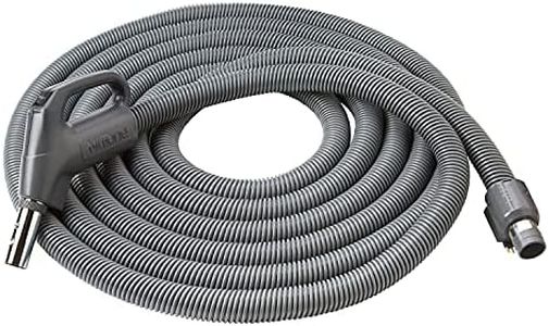 The 3-position on/off switch on the handle allows users to control the vacuum and motorized brush without having to return to the central unit, adding convenience during use. The ergonomic swivel handle further improves usability, enabling smooth navigation around furniture and tight spots, which can be a great advantage in a cluttered or furnished space. At 7.3 pounds, the hose may feel a bit heavy for prolonged use, potentially causing fatigue. Being electric, it offers powerful suction but will require compatible electrical outlets, which might limit its use in some homes. This central vacuum hose is a solid choice for users needing a durable, long-reach hose with convenient features, provided the weight and electric requirements are suitable for their setup.