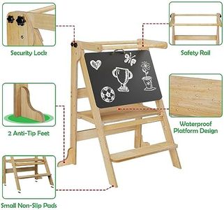 The package includes a blackboard and six colored chalks, encouraging your child’s creativity while they use the stool.