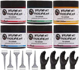 The WELYEME Pet Hair Dye Set offers a permanent, non-toxic hair coloring option designed specifically for dogs, making it a good choice for pet owners interested in creative grooming or professional use. The set includes six vibrant colors—red, green, yellow, blue, pink, and purple—in 150 ml bottles, plus color brushes and gloves to help with easy and precise application. The dye comes in lotion form and is applied by shaking well, spreading on the desired fur area, leaving it for 20 minutes, then rinsing off. This provides a semi-long-lasting color that can stay vibrant for up to six months.