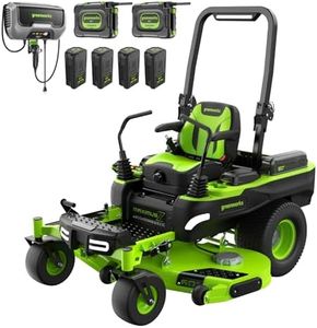 With a 5-year tool warranty and 3-year battery warranty, it offers peace of mind for long-term use. This mower is well suited for homeowners with medium-to-large lawns looking for a powerful, environmentally friendly alternative to gas riding mowers.