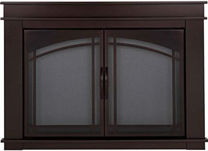 The Pleasant Hearth Carlisle Fireplace Glass Door is designed to fit medium to large fireplace openings, accommodating widths between 30 and 37 inches and heights around 22 to 27 inches. Its black powder-coated finish and smoked glass offer a sleek, modern look that suits many home styles. The beveled frame and cabinet-style doors add an elegant touch, while the full-opening doors with easy-grip handles make it convenient to access the fireplace and enjoy the view of the fire.