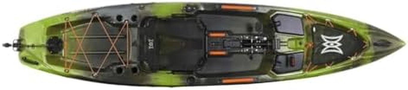 The kayak includes practical storage options like a custom tackle box, multiple rod holders (both forward- and rear-facing), and accessory mounting tracks, helping organize fishing gear efficiently. Comfort-wise, the premium dual-layer mesh seat is removable and breathable, and adjustable foot braces combined with a large rudder provide good control and ease of steering. Non-slip deck pads add safety when standing. However, note that the kayak itself is quite heavy at 158 pounds, plus 24 pounds for the motor console, which might make transportation and launching more challenging for some users. Also, the motor battery is not included, so you'll need to purchase that separately.
