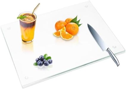 The Tempered Glass Cutting Board by Light In The Dark is a solid choice for anyone looking for a durable and versatile kitchen tool. At a large size of 18x24 inches, it provides ample space for preparing various foods. The tempered glass material makes it scratch-resistant, heat-resistant, and shatter-resistant, which are excellent features for long-term use. The glass surface is also hygienic as it resists stains and odors, and is easy to clean since it's dishwasher safe.