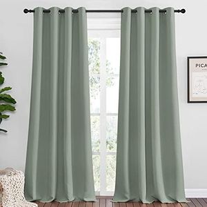 The NICETOWN Greyish Green Blackout Curtains are designed to block out most light (85%-99%) and UV rays, making them ideal for anyone wanting to darken a room, reduce noise, and improve privacy. Made from polyester with a triple weave fabric, these curtains help regulate room temperature by insulating against heat in summer and cold in winter. Each panel measures 55 inches wide and 102 inches long, fitting most standard windows, and features a calming greyish green color that complements many room styles.