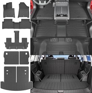 The Thinzyou Floor Mats offer a tailored fit for 2024-2025 Hyundai Santa Fe 6/7 seat models (excluding hybrids), providing comprehensive coverage with both trunk and backrest mats. Made from high-quality TPE material, these mats are environmentally friendly, waterproof, and dustproof, which makes them durable and easy to clean just by wiping off dirt. The installation is straightforward and involves using velcro to secure the back liner, although it might require exposure to sunlight for a day or two to become completely flat after shipping.