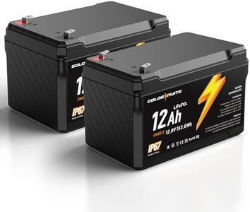 The GOLDENMATE 12V 100Ah LiFePO4 lithium battery (sold as a 2-pack) is a solid choice for powering fish finders, RVs, solar setups, and other outdoor or off-grid equipment. With a robust 12.8 volts and 100 amp hours capacity per battery, it offers ample power and flexibility, especially since you can connect up to four batteries to increase voltage or capacity. One of its standout features is its long cycle life—ranging from 4,000 to an impressive 15,000+ recharge cycles—meaning it can last many years with regular use, far outlasting traditional lead-acid batteries. The built-in Battery Management System (BMS) adds important safety by protecting against overcharging, overheating, and short circuits, and the battery can handle extreme temperatures by preventing use if conditions are too harsh. It also has a very low self-discharge rate, so it can hold its charge for up to a year without maintenance, which is great if you only use your fish finder seasonally.