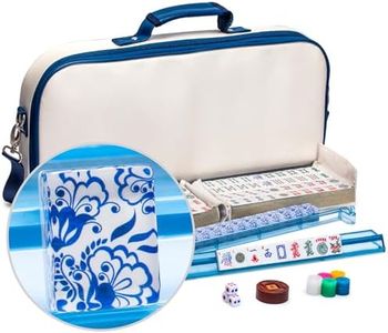 It also comes with useful accessories like four racks with pushers, dice, chips, a wind indicator, and a beginner-friendly manual, making it a good choice for both new and experienced players. The set is stored in a stylish, zippered pink bag with a handle and extra pockets, making it easy to carry and keep organized. Protective sleeves for the tiles and racks add durability during transport. Weighing about 8.7 pounds, this set strikes a balance between portability and a solid feel.