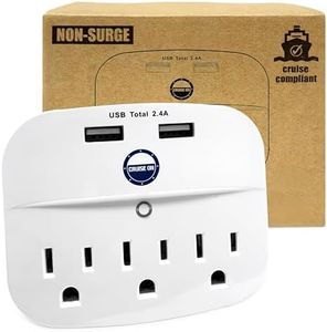 This outlet extender is specifically designed without surge protection, which aligns with cruise ship regulations that often prohibit such devices. This makes it a safe choice for use on cruises. The compact dimensions (3.48 x 1.73 x 1.42 inches) make it highly portable, ideal for travel or fitting into tight spaces like behind furniture.