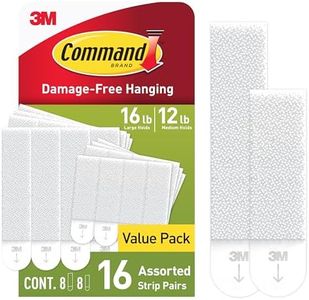 The Command 15 lb Large Picture Hanging Strips offer a convenient solution for hanging pictures without damaging your walls. Each package contains 14 pairs of strips, capable of holding frames up to 24 x 36 inches and weighing up to 15 pounds, making them suitable for most home decor needs. The strips are versatile in terms of surface compatibility, adhering well to smooth surfaces such as painted walls, finished wood, painted concrete cinder blocks, laminate, glass, metal, and tiles. This broad compatibility is a major plus for users who need to hang items on various surfaces around their home.