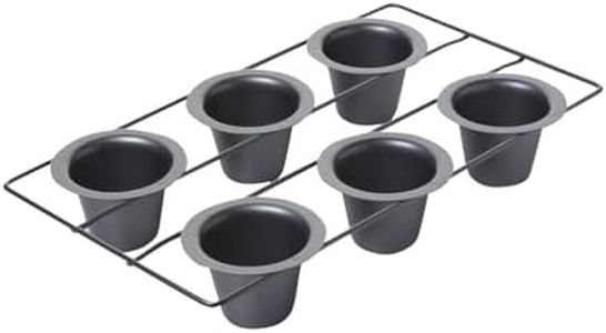 With a non-stick coating, the pan ensures that your popovers slide out easily, and cleanup is a breeze, especially since it is dishwasher safe. This pan includes 6 cups, making it suitable for small batches, and its dimensions are 1 inch in depth, 6 inches in width, and 14 inches in height, making it easy to store.