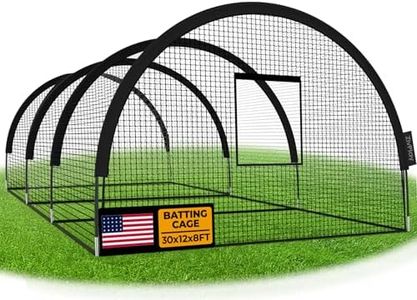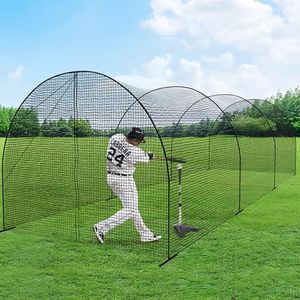 The ANYTHING SPORTS Full Batting Cage is a comprehensive solution for both baseball and softball practice. At 60 feet in length, the cage offers ample space for practice, and its metal construction ensures robust durability. One of the standout features of this cage is its portability; despite its size, the collapsible design makes both assembly and disassembly straightforward. While it's recommended to have four people for setup, it can be managed by two, thanks to the 'click' together assembly process. This adds a significant convenience factor for users who might frequently need to move or store the cage.
