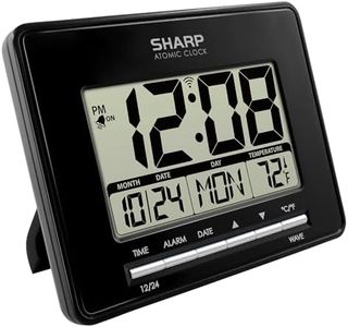 The Sharp Atomic Clock offers a high level of accuracy by synchronizing with the WWVB radio signal, ensuring it remains accurate to within one second. This feature eliminates the need for manual time setting, making it very user-friendly. The large 4-inch tall LCD display is easy to read and shows not only the time but also the indoor and outdoor temperatures, the calendar date, and the day of the week. This makes it a versatile addition to any home, whether placed on a wall or a desk with its integrated stand.