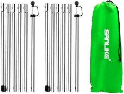 These poles are adjustable, extending from 2.80ft to 8.37ft in length, which offers flexibility for various uses, such as camping or setting up an awning. At only 1.4 lbs each, and supplied with a storage bag, they are lightweight and portable, making them easy to carry around during outdoor activities.