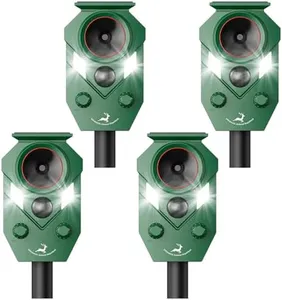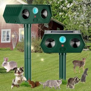 This 4-pack ultrasonic deer repeller set uses a combination of high-frequency sound waves and flashing LED lights to keep a variety of animals like deer, cats, raccoons, and squirrels away from your garden or yard. Thanks to its passive infrared sensor, it detects movement within 20-25 feet and a wide angle of up to 150 degrees, triggering the deterrent to activate only when needed. The dual power options—solar charging and USB charging—add flexibility, though the device works best with regular sunlight exposure to keep its batteries charged.
