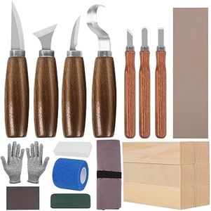 This wood carving kit is designed specifically for adult beginners, offering a comprehensive set of tools that cater to both novice and more experienced users. It includes 23 pieces, featuring 4 large carving knives and 5 detail knives, providing a good variety for different carving techniques. The 9 basswood blocks included are soft and easy to work with, making them perfect for those just starting out. Additionally, the kit comes with a polishing compound, leather strop, gloves, and a handy roll bag for organization and portability.