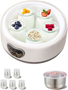 Cleaning is hassle-free with its fingerprint-resistant exterior and dishwasher-safe components. Safety is a priority, with over 10 features including overheat protection and a safe-locking lid. The Instant Pot also comes with an app that provides over 800 recipes, enhancing its usability. However, it should be noted that the Instant Pot does not come with individual yogurt jars, which might be a downside for those specifically looking for a traditional yogurt maker setup with multiple jars. Additionally, the 6-quart size might be too large for some users with limited kitchen space.